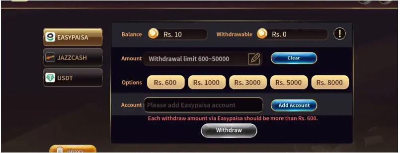 Withdraw winnings directly to JazzCash, EasyPaisa, or bank accounts.